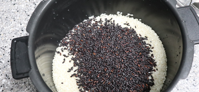흑미는 단단하고 식감이 강하기 때문에 불리는 과정이 필요합니다: