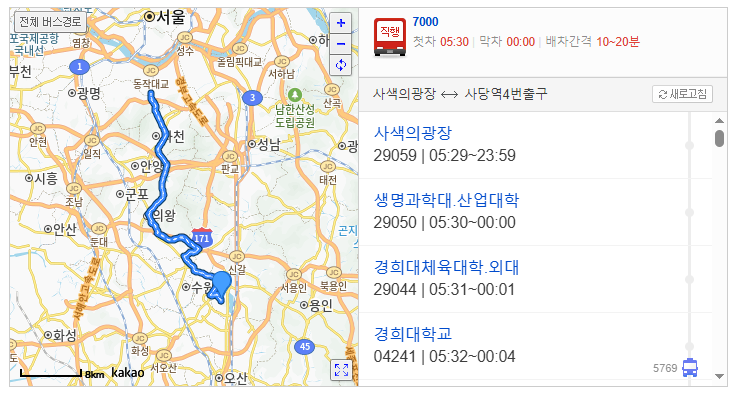 수원 7000번 버스 막차 시간 확인하기