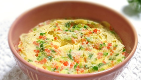 전자렌지의 파워를 중간 정도로 설정하고 2-3분간 가열합니다. 중간에 한번 꺼내어 계란물을 저어주면 더욱 고르게 익힙니다. 전자렌지의 출력에 따라 가열 시간을 조절할 필요가 있습니다.